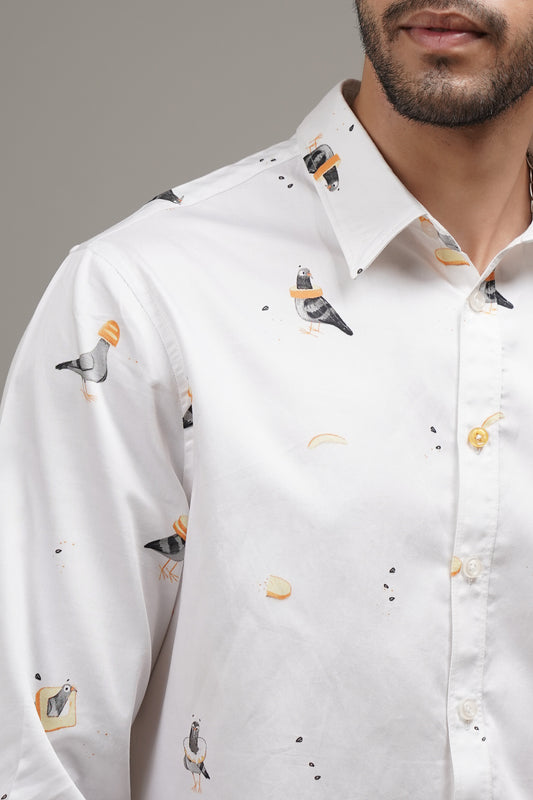 Feathered Delights - Printed Cotton Shirt