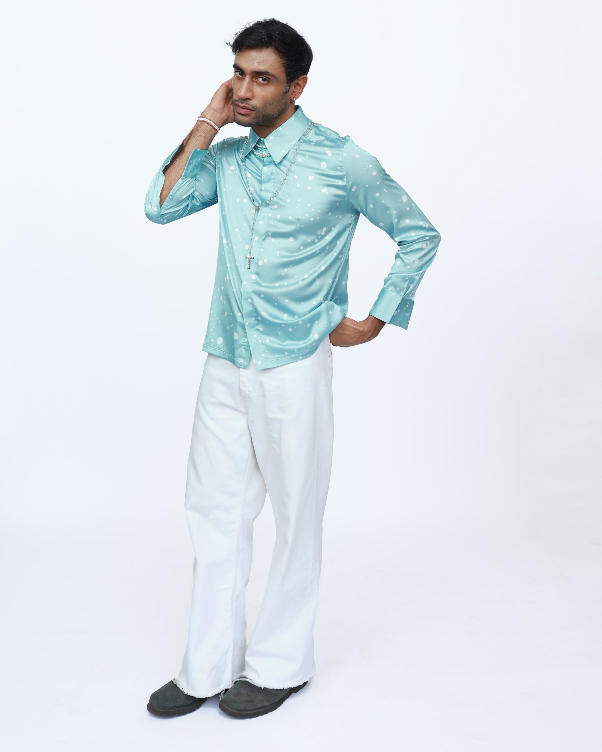 Dive into "Aqua Elegance," a masterpiece boasting fluidity and sophistication. The droplet inspired design, with face motifs at back, elevates your style to new depths of luxury, perfect for your party wear collection.