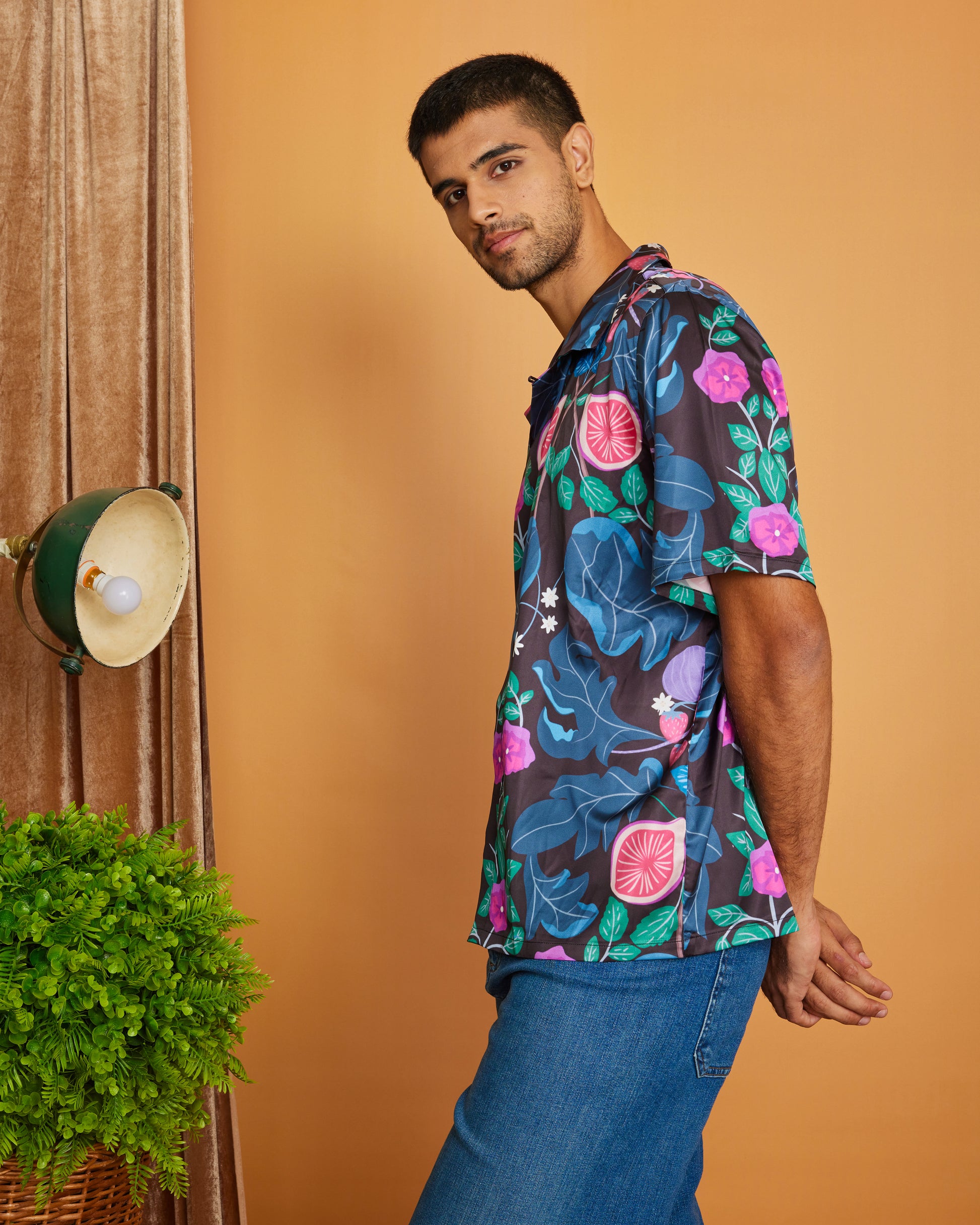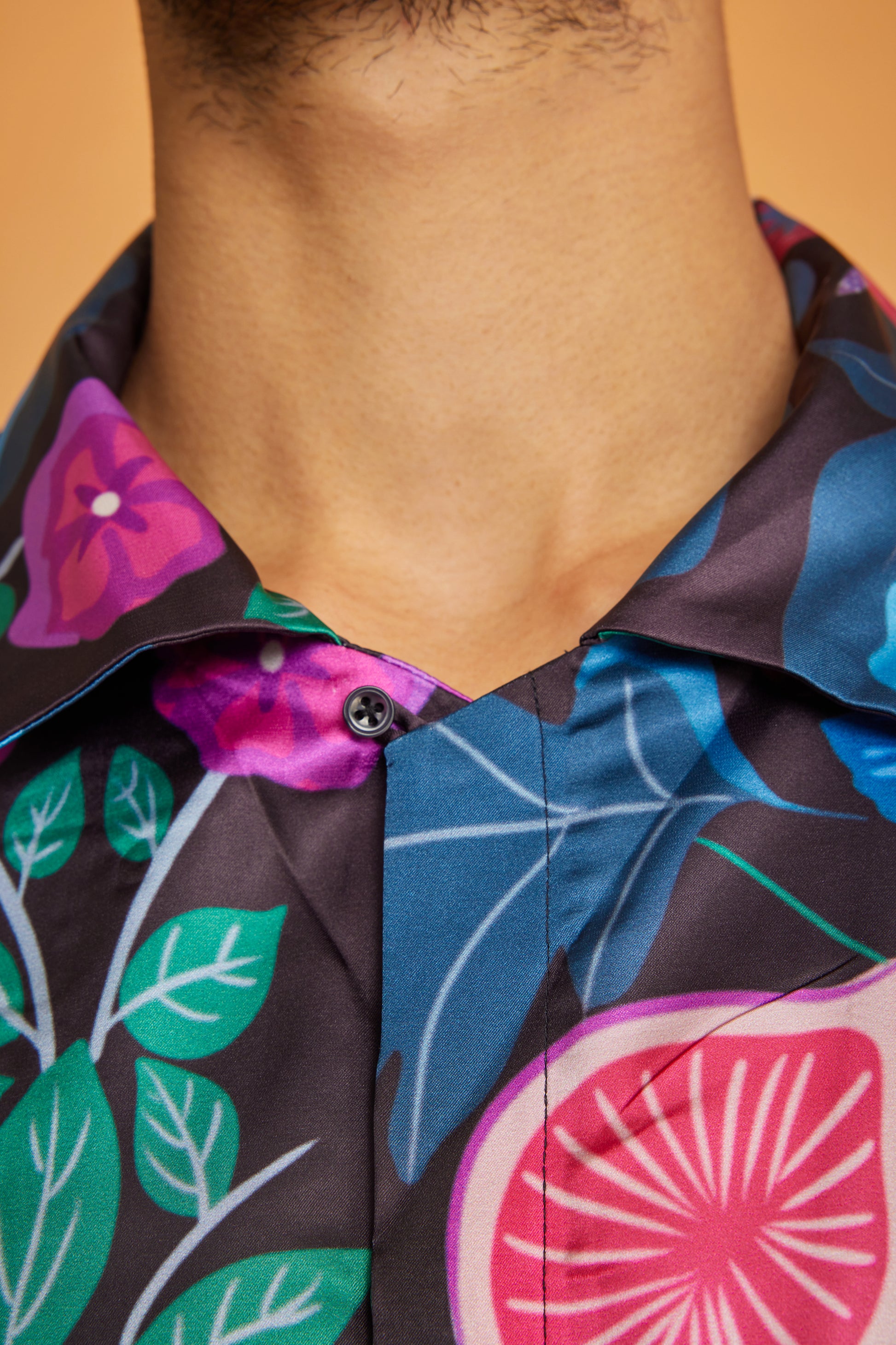 Indulge in the vibrant hues of our Berry Burst shirt. Running leaves and berries create a dynamic pattern, evoking the lushness of nature. Make a statement with this bold and stylish piece, perfect for beachwear and vacation outfits.