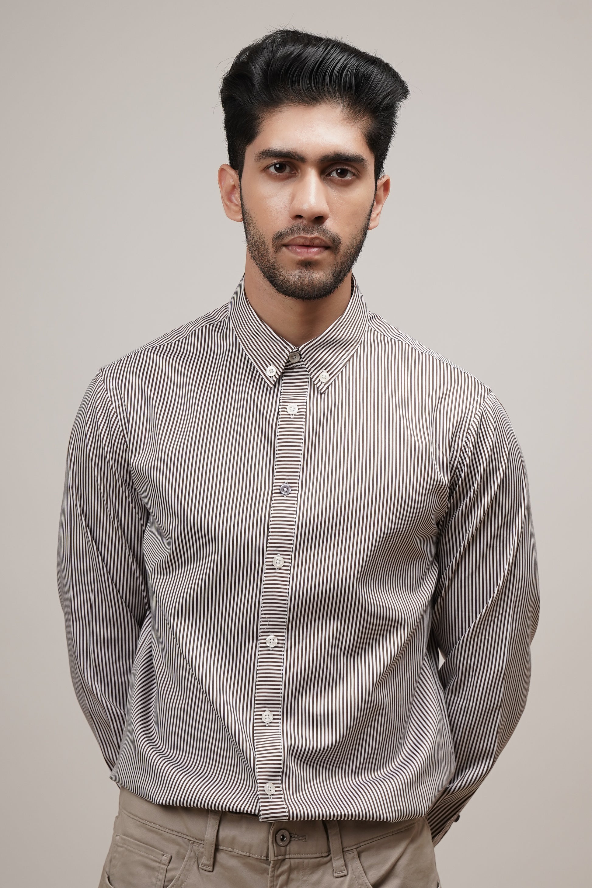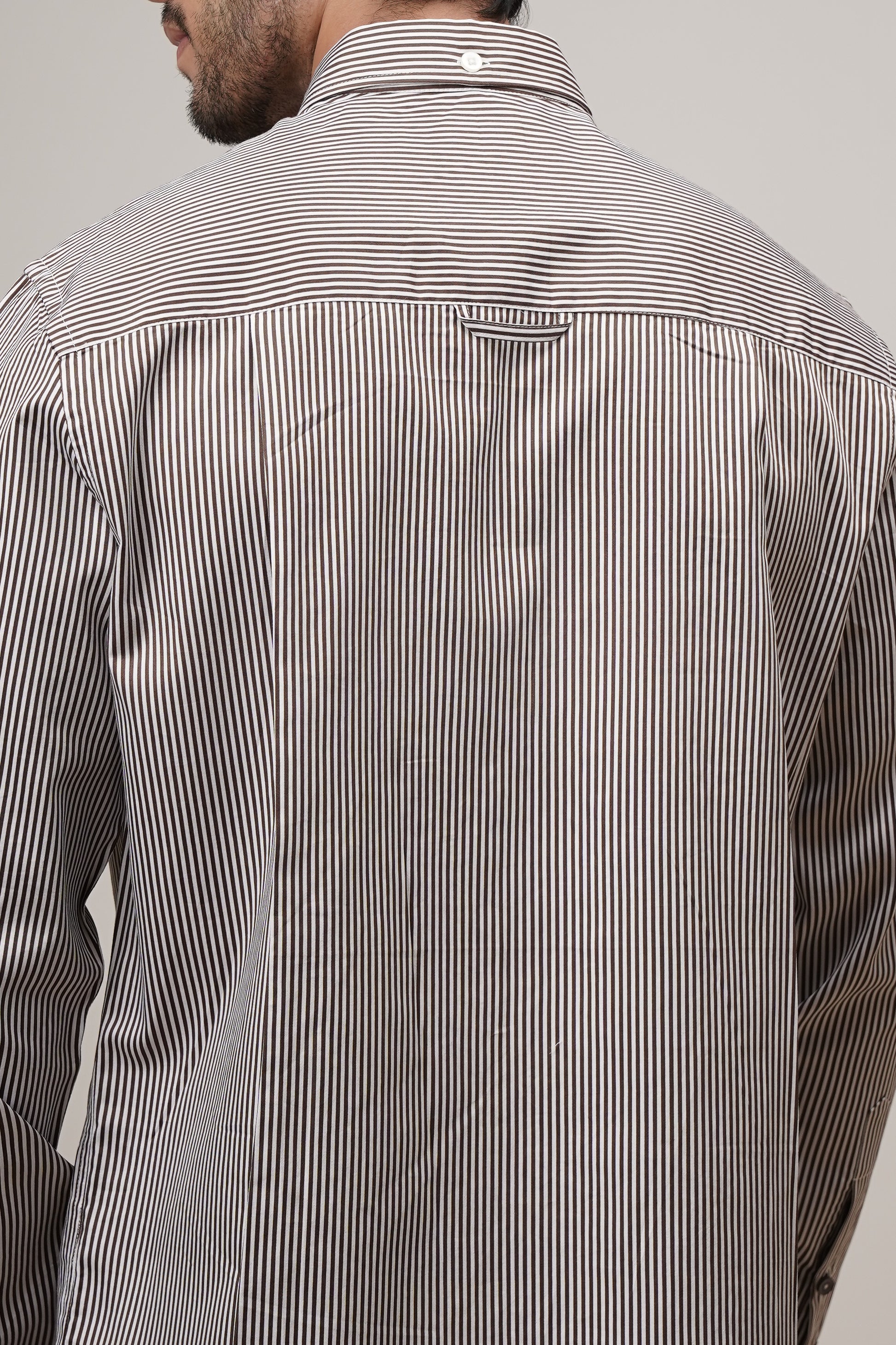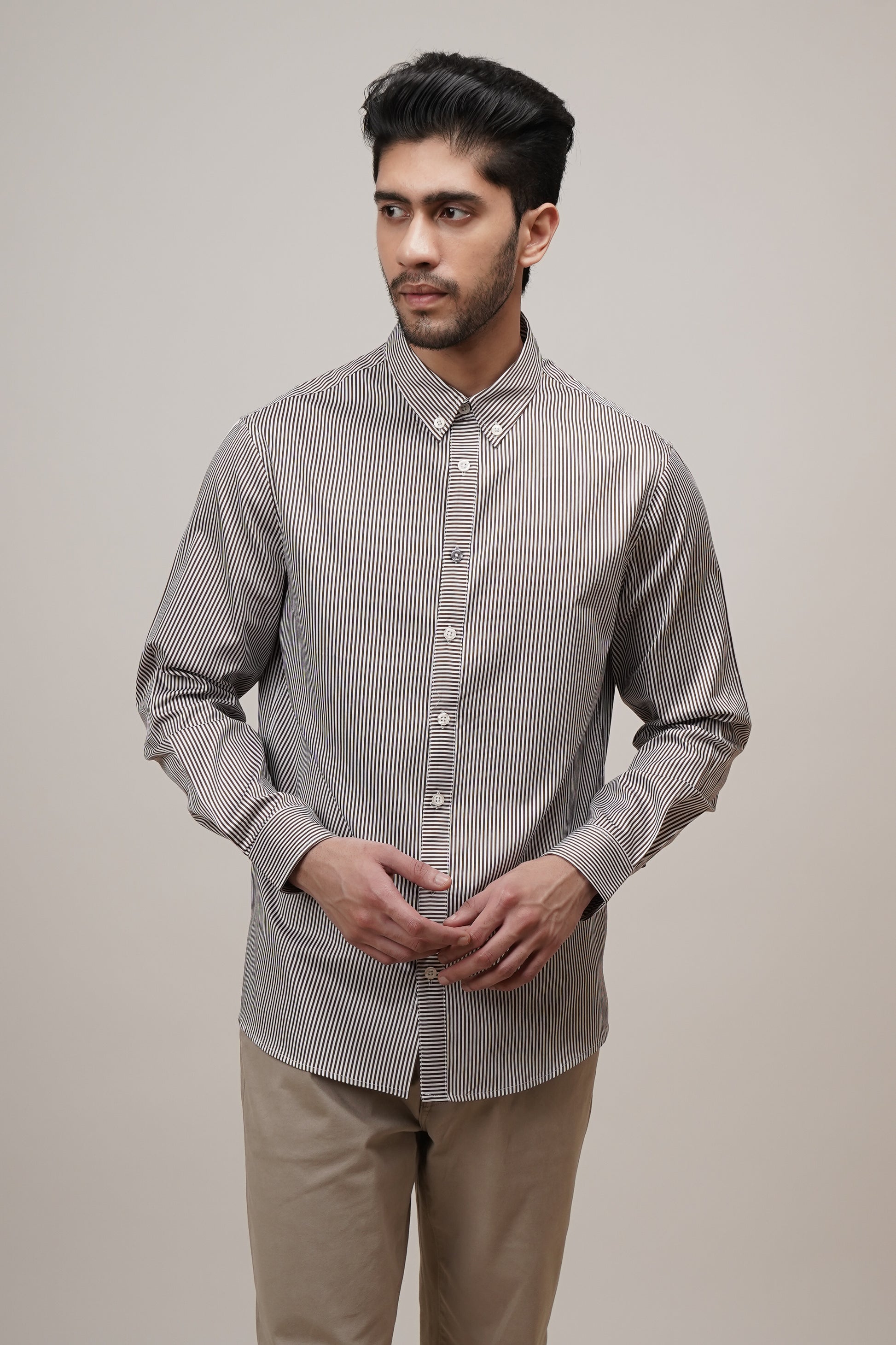 Crafted in a durable high quality soft cotton, this classic shirt is essential to any preppy wardrobe. Designed with cool, classy stripes throughout the garment, this shirt is cut for a regular fit and features a button-down collar, adjustable cuffs, curved hem and knife pleats with a locker loop at the back. Easy and Versatile, this shirt can be worn formally tucked-in, or casually untucked.