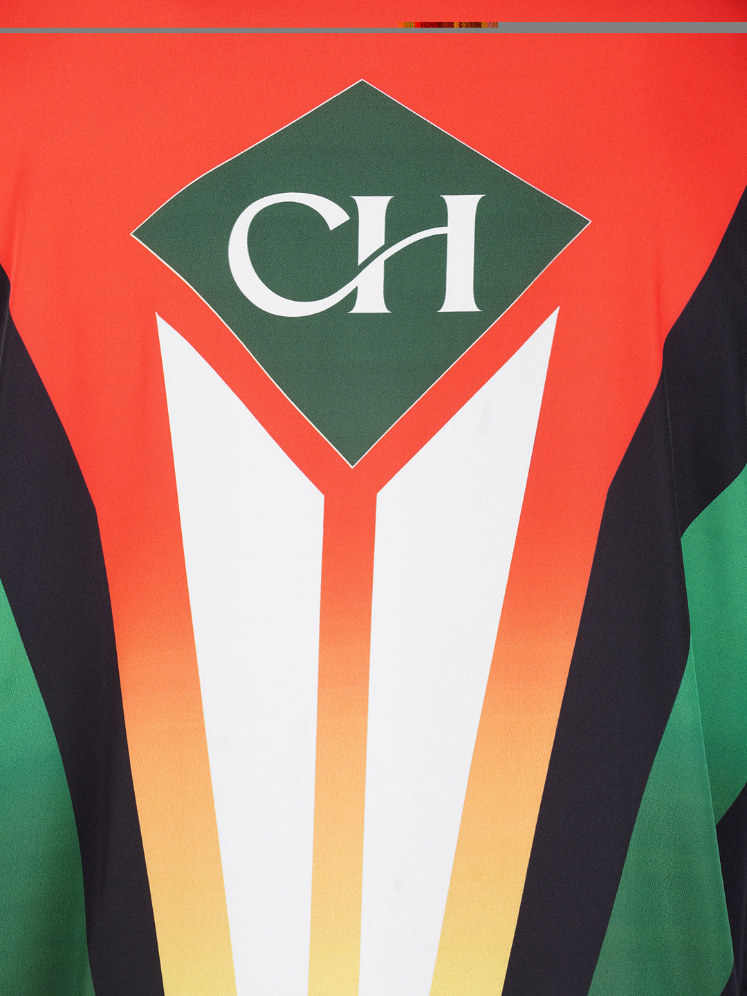 Fuel your passion for speed with Ignite, a dynamic fusion of orange-to-yellow gradient energy, complemented by green, black, and white triangular blocks for a bold racing aesthetic. The CH monogram on the back symbolises power and precision. Designed for those who thrive on adrenaline, this shirt is built to stand out.