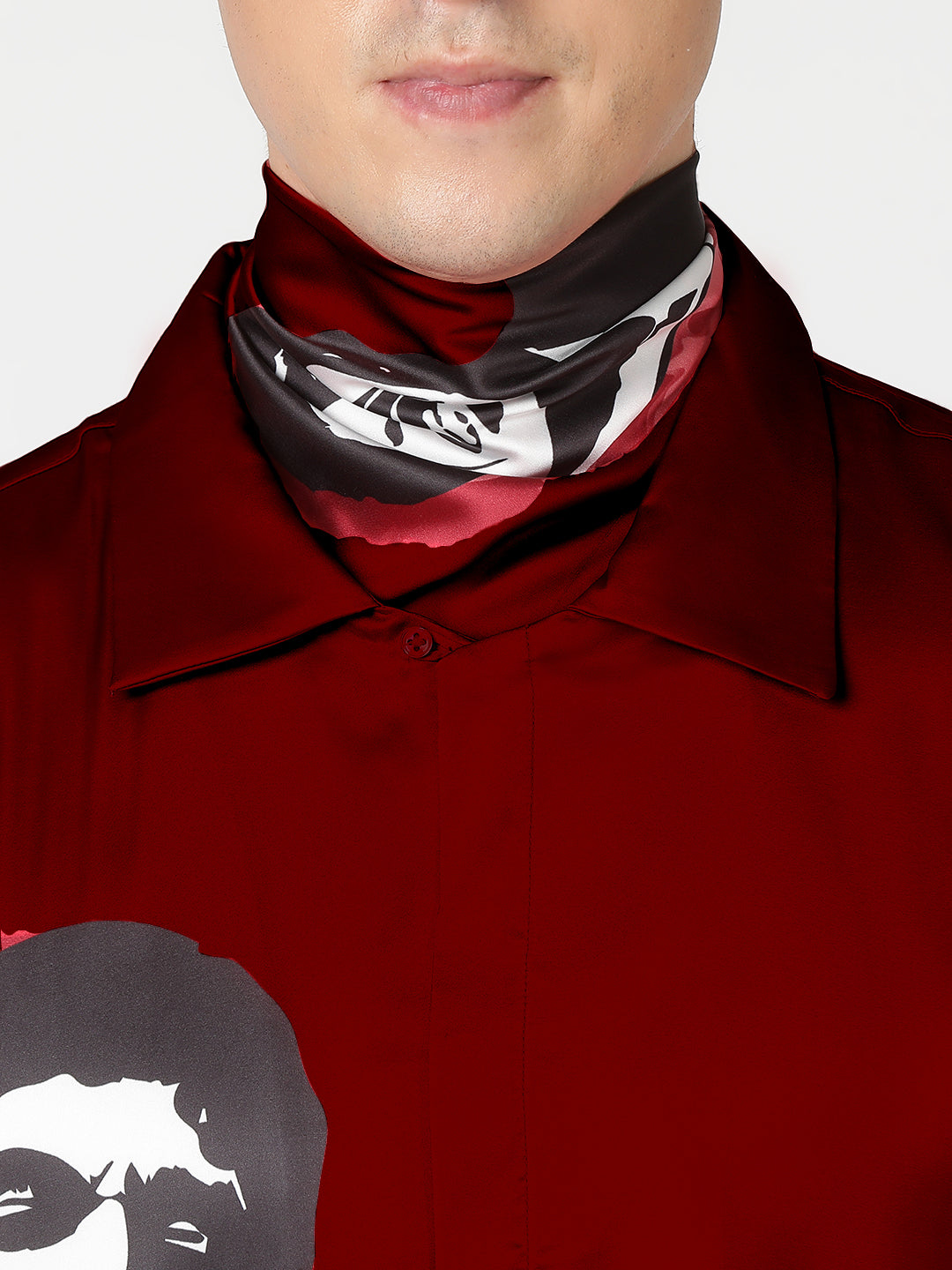 Red Menace Neck Scarf Cum Pocket Square in Premium Soft Satin