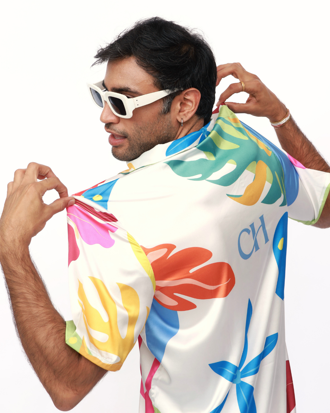 Tropical Blossoms shirts offer a botanical oasis in party wear clothes for men. Showcasing an array of tropical flowers, they're the epitome of summer party wear.