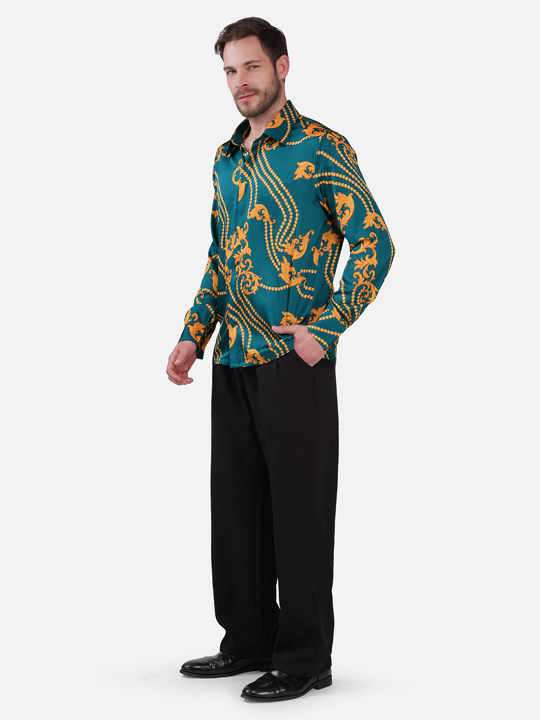 VERDE ROYALE – Premium Soft Satin Party Shirt